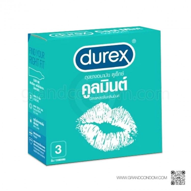 Durex Cool Mint (ถุงยางกลิ่นมิ้นท์) ถุงยางอนามัยจากน้ำยางธรรมชาติแท้ 100% ผิวเรียบลื่น ให้สัมผัสแบบธรรมชาติ ผนังไม่ขนาน สวมใส่กระชับสรีระ ปลายมีกระเปราะช่วยในการกักเก็บน้ำเชื้อปริมาณมากได้อย่างปลอดภัยไม่รั่วไหล Durex Cool Mint (ถุงยางกลิ่นมิ้นท์) มีขนาด 52.5 มม. สวมใส่สบายไม่บีบรัดด้วยขนาด .5 มม. ที่ไม่เหมือนใคร ทำให้ไซส์เลขคี่ที่ไม่ค่อยมีจำหน่ายในท้องตลาดสามารถใส่ได้ด้วย 52.5 มม. ช่วยให้ชายไทยขนาด 52 52.5 และ 53 มม. สามารถสวมใส่ได้อย่างสบายขึ้น Durex Cool Mint (ถุงยางกลิ่นมิ้นท์) มีสารหล่อลื่นกลิ่นมินต์ในตัว กลิ่นหอมเหมือนลูกอมมินต์สดชื่น สามารถออรัลได้โดยไม่เหม็นกลิ่นของยาง สารหล่อลื่นกลิ่นมินต์ช่วยลดกลิ่นไม่พึงประสงค์ สร้างบรรยากาศสดชื่นสะอาดให้กิจกรรมของคุณ และยังช่วยลดการเสียดสีจากการสอดใส่ได้ในตัว Durex Cool Mint (ถุงยางกลิ่นมิ้นท์) มีความหนาในระดับปกติ 0.06 มม. เนื้อยางโปร่งแสง ไม่เจือสี
