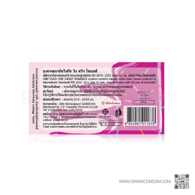 OneTouch One Sweet Romance มีขนาด 52 มม. มาตรฐานชายไทย